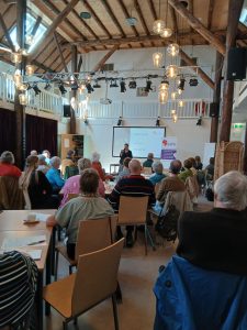 Dat er behoefte was aan deze bijeenkomst, bleek al bij aanvang: er was veel meer belangstelling dan verwacht. Door extra stoelen en tafels aan te slepen, kregen alle bezoekers toch een plek. Spreker Joke Roelfsema stond daarom voor een volle zaal. Zij ging kort in op het rouwproces dat ze zelf heeft doorgemaakt. En dat ertoe heeft geleid dat ze zich daarin heeft verdiept en inmiddels al jarenlang rouwcoach is.