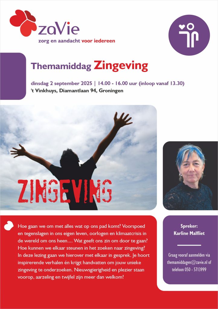 Al met al was de conclusie van Karline dat veel mensen door hun dagelijkse werkzaamheden en beslommeringen helemaal niet tobben over zingeving, en dat dat ieder van harte gegund is. Maar dat er ook mensen zijn die in hun leven te maken krijgen met problemen, ziekte etc. waarbij zingeving wel een thema kan worden of zijn. En dat diegenen dan bijv. haar (bovengenoemde) eigen ervaringen kunnen toepassen, om weer meer de zin van het leven in te gaan zien.